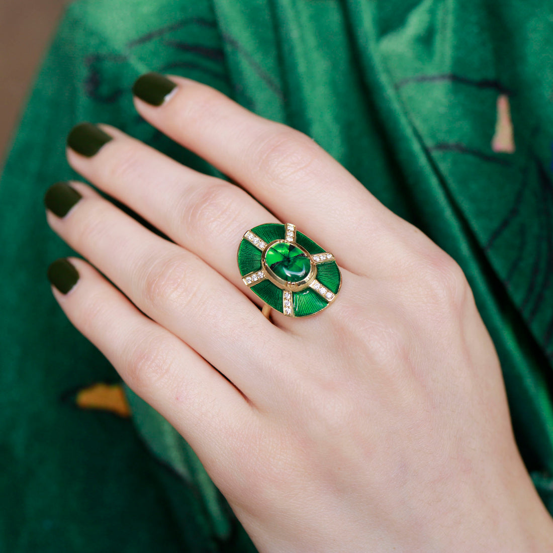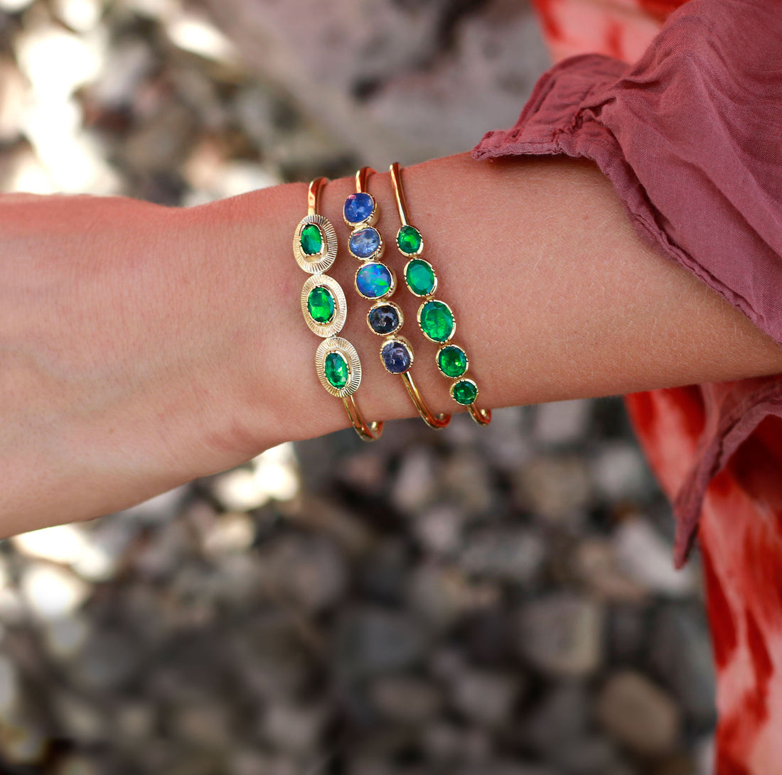 "Emerald is an incredibly precious and vibrant green gemstone that varies in tone from light to dark green. I love working with Emerald as it looks amazing on any skin tone.