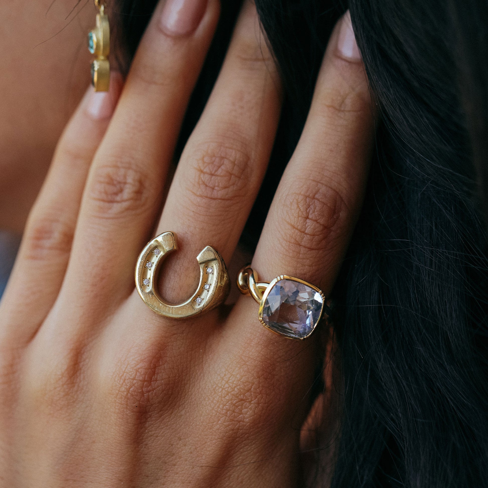 From Brooke's Palomino Collection this one of a kind Aquamarine Twist Ring features a hand twisted, 18K gold band inspired by the elegant lines of a horse’s bridle.