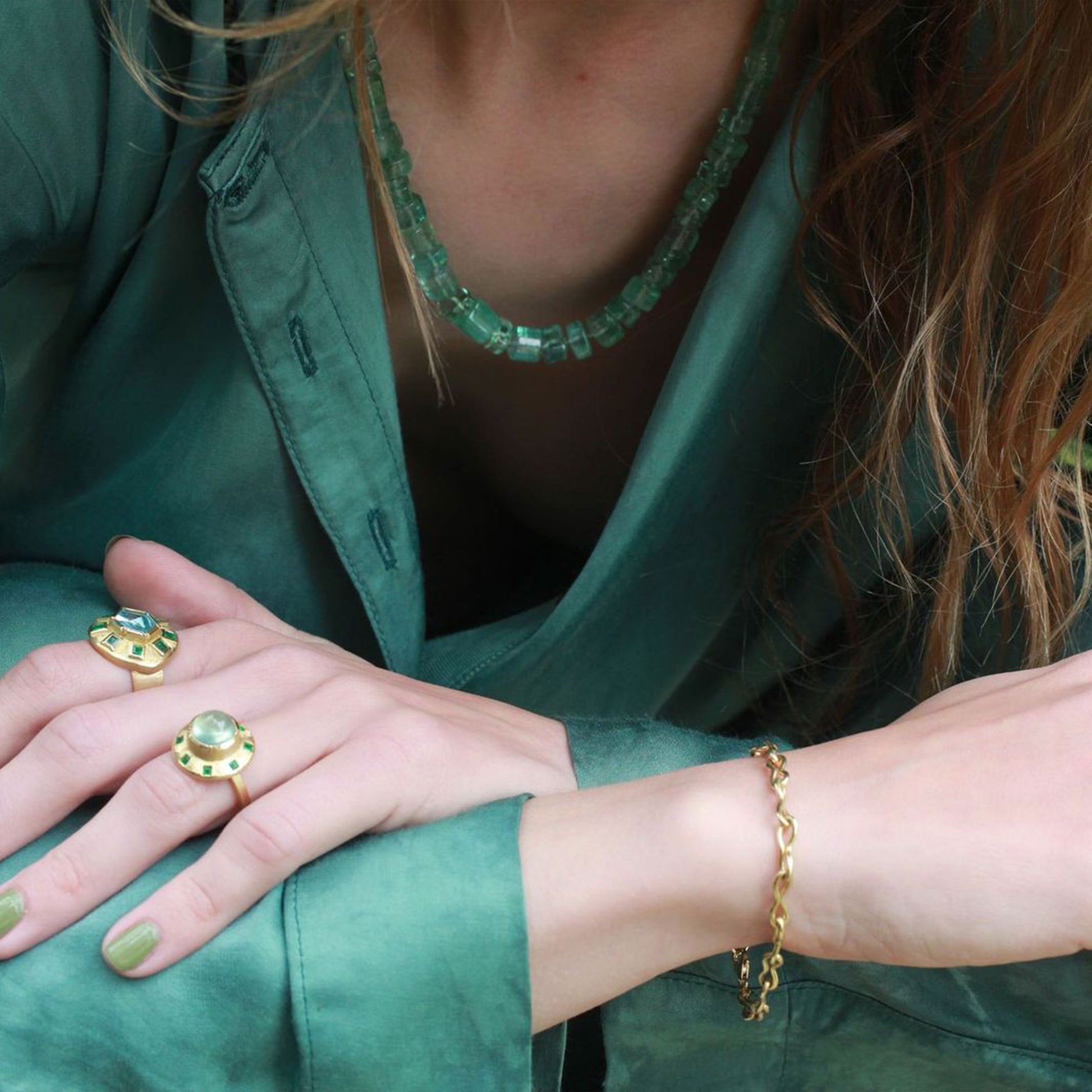 Tourmaline beaded necklace with 18k brushed gold clasp.